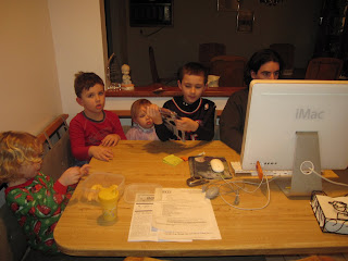 And when Katelyn dared to sit on my lap, Matteo kept insisting "My Mommy" and after about 10 times of saying that (she didn't get the hint, though she was not trying to nurse off me, so maybe she did), Matteo proceded to climb all over the two of us. LIke a good sport Katelyn really didn't care.